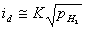 Если в соответствии с уравнением Нернста пересчитать потенциалы диффузионной стороны в величины эффективного давления молекулярного водорода, то можно видеть (рис.2), что приближенно выполняется соотношение